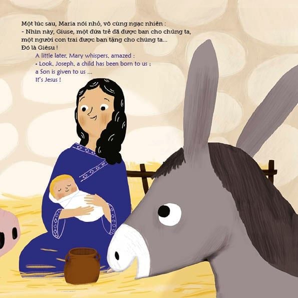 Câu chuyện Giáng Sinh được miêu tả bằng những hình ảnh sống động, ngôn từ gần gũi cùng với lối kể chuyện dí dỏm dẫn lối các bé đến gần Chúa Giêsu, Vị Thiên Chúa xuống làm Người cách đây hơn hai ngàn năm.