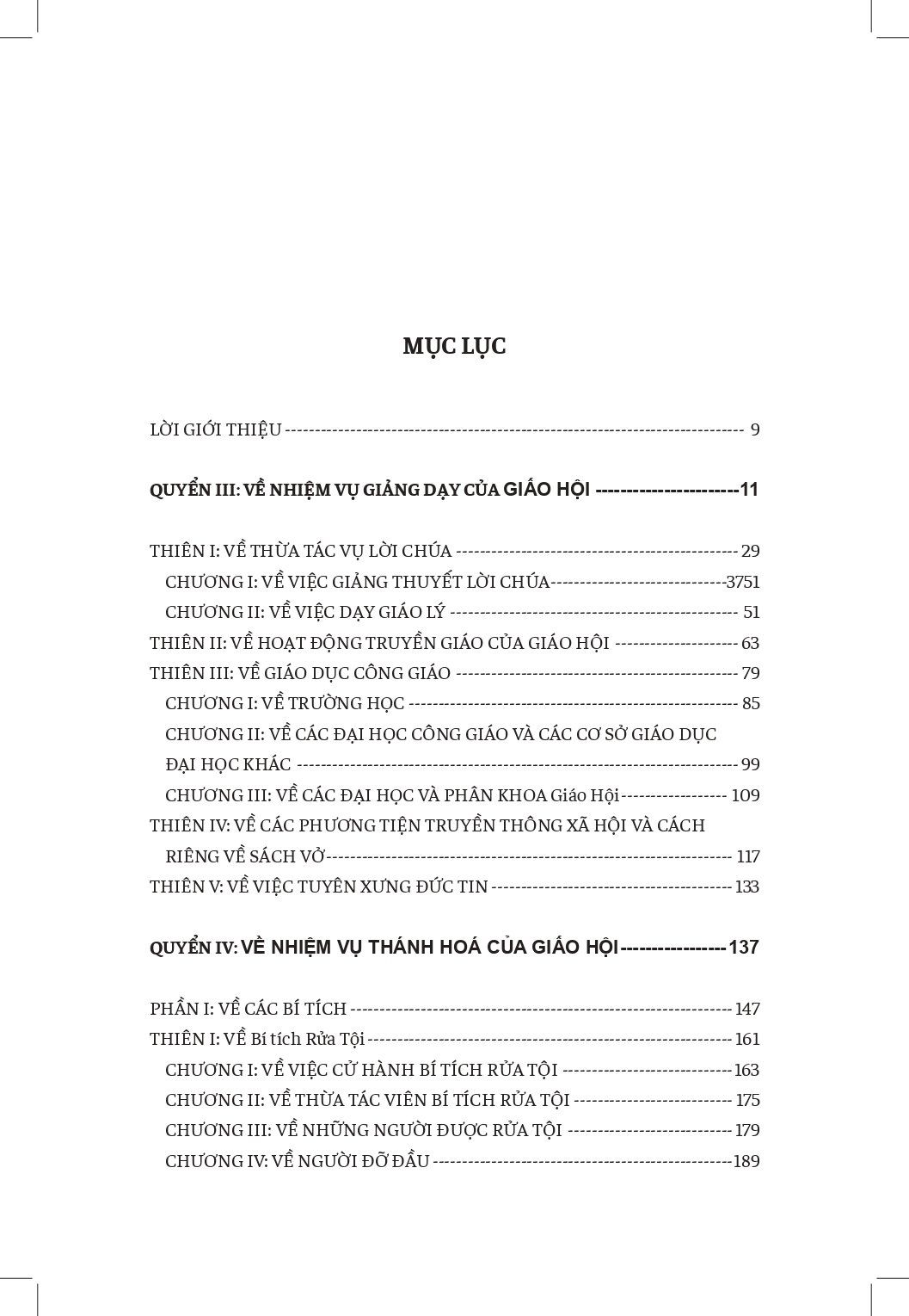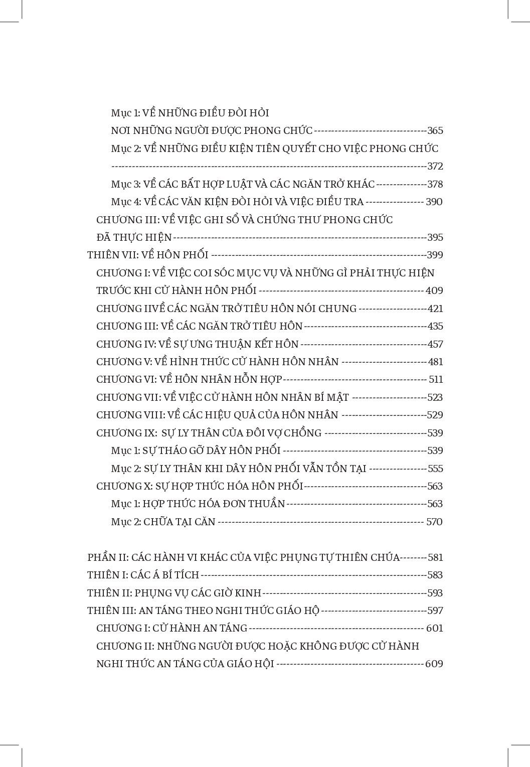 Tập III của bộ sách: tiếp tục hành trình khảo cứu Giáo luật bằng việc tập trung phân tích hai trong số những cải cách pháp lý quan trọng nhất của Giáo Hội trong thập niên qua, liên quan đến Quyển VI và Quyển VII. Được ban hành dưới triều đại của Đức Thánh Cha Phanxicô, những sửa đổi này không chỉ thể hiện sự tinh chỉnh về kỹ thuật pháp lý mà còn phản ánh chiều sâu ưu tư mục vụ, nhằm đáp ứng những thách thức của thời đại trong tinh thần công lý và lòng thương xót.